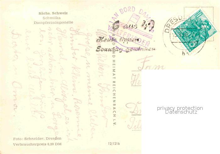 72634352 alte Postkarte Schmilka Dampferanlegestelle postalisch gelaufen Erhaltung siehe scans [AndreD76] KatCode: 11110014287020
