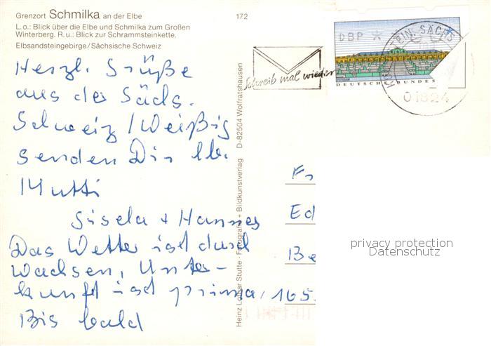 73840806 alte Postkarte Schmilka Grenzort an der Elbe Saechsische Schweiz Grosser Winterberg Schrammsteinkette Elbsandsteingebirge postalisch gelaufen Erhaltung siehe scans [FriedD77] KatCode: 11110014287020