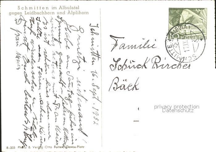 11651330 alte Postkarte Schmitten GR im Albulatal Leidbacherhorn und ?lplihorn postalisch gelaufen Erhaltung siehe scans KatCode: 11470100305968
