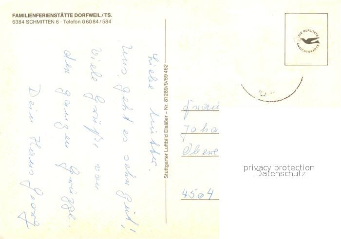 73084114 alte Postkarte Schmitten Taunus Familienferienstaette Dorfweil Flugaufnahme postalisch gelaufen Erhaltung siehe scans [KathaD81] KatCode: 11110006434009