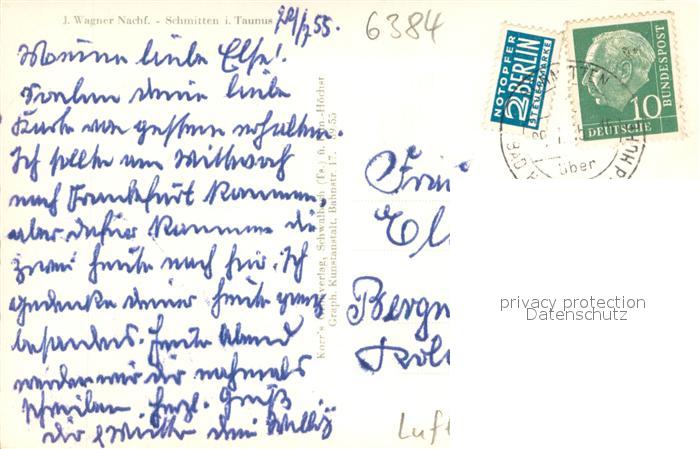 73705497 alte Postkarte Schmitten Taunus Gesamtansicht postalisch gelaufen Erhaltung siehe scans [LiesaD40] KatCode: 11110006434009