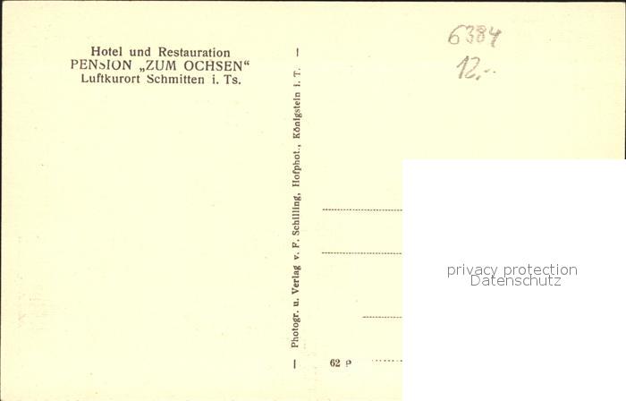 72100584 Schmitten Taunus Hotel Pension Zum Ochsen postalisch nicht gelaufen Erhaltung siehe scans KatCode: 11110006434009
