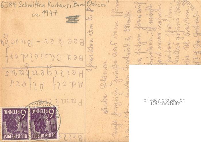 73706032 alte Postkarte Schmitten Taunus Kurhaus Zum Ochsen postalisch gelaufen Erhaltung siehe scans [LiesaD40] KatCode: 11110006434009