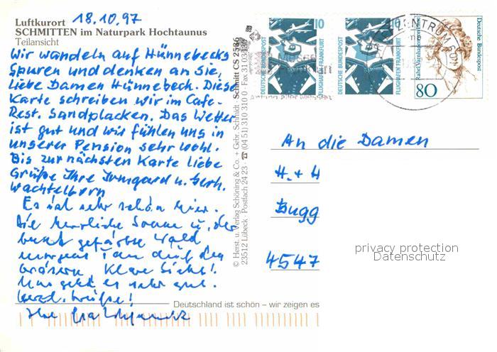 72838595 alte Postkarte Schmitten Taunus Luftkurort Naturpark Hochtaunus Fliegeraufnahme postalisch gelaufen Erhaltung siehe scans [FriedD77] KatCode: 11110006434009