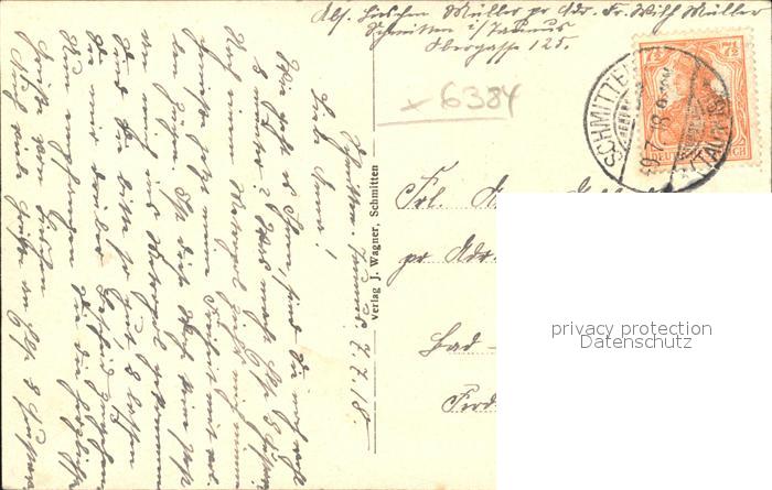 41786208 alte Postkarte Schmitten Taunus Ortsansicht mit Kirche Blick von der Hugoruhe Schellenberg postalisch gelaufen KatCode: 11110006434009