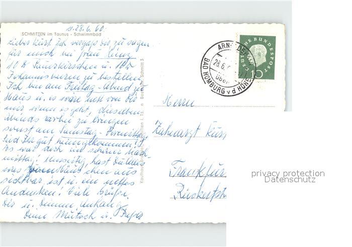 71985913 alte Postkarte Schmitten Taunus Schwimmbad postalisch gelaufen Erhaltung siehe scans KatCode: 11110006434009