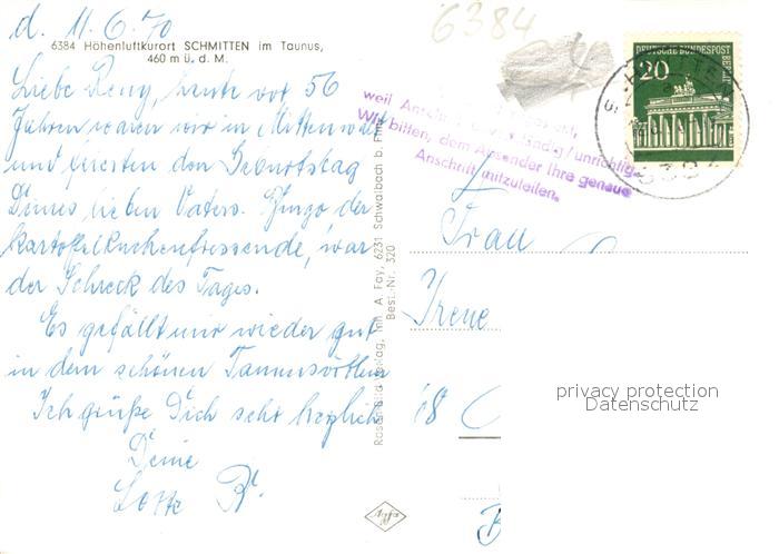 73282567 alte Postkarte Schmitten Taunus postalisch gelaufen Erhaltung siehe scans [NatalD47] KatCode: 11110006434009
