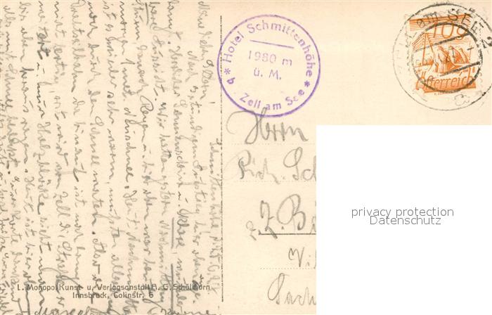 43115091 alte Postkarte Schmittenhoehe Blick auf Glocknergruppe und Kaprunertal postalisch gelaufen Erhaltung siehe scans [FriedD77] KatCode: 11390322050628