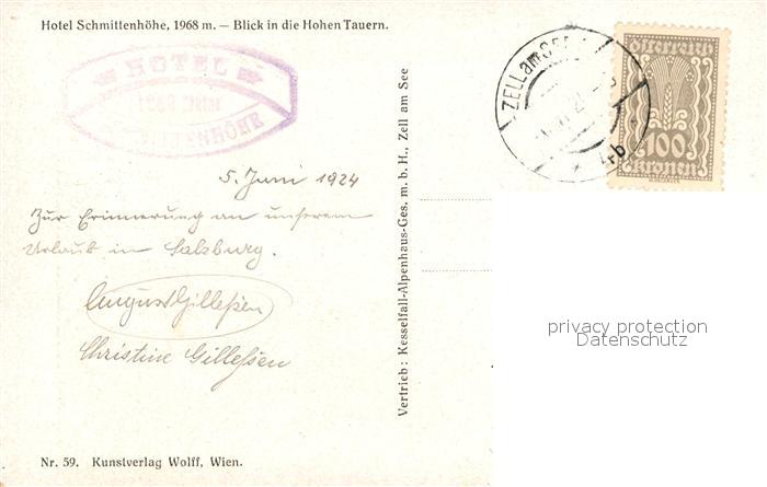 43091135 alte Postkarte Schmittenhoehe Hotel Schmittenhoehemit den Hohen Tauern postalisch gelaufen Erhaltung siehe scans [WerneD78] KatCode: 11390322050628