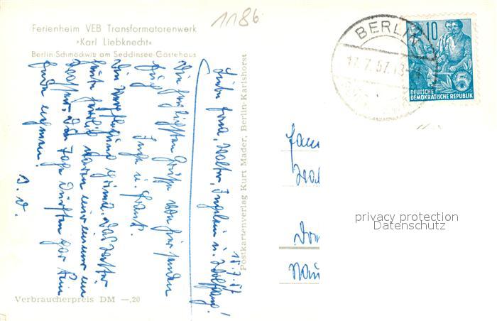43370295 alte Postkarte Schmoeckwitz Ferienheim VEB Transformatorenwerk Karl Liebknecht postalisch gelaufen Erhaltung siehe scans [WerneD78] KatCode: 11110011000000