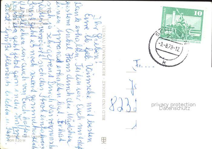 72406218 alte Postkarte Schmoelln Thueringen Marktplatz Aussichtsturm Brueckenplatz Brauereiteich Fontaene postalisch gelaufen Erhaltung siehe scans KatCode: 11110016077043
