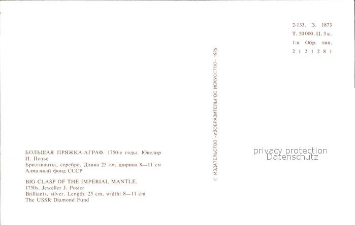 Schmuck Big Clasp Imperial Mantle 1750 UssR Diamond Fund postalisch nicht gelaufen Erhaltung siehe scans