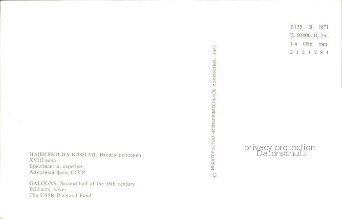 Schmuck Galoons 18th century Brillants UssR Diamond Fund postalisch nicht gelaufen Erhaltung siehe scans