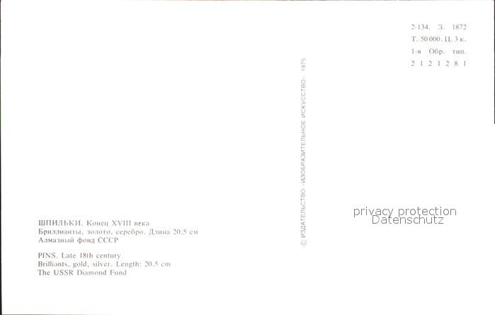 72356962 Schmuck Pins 18th century USSR Diamond Fund KatCode 22320000000100