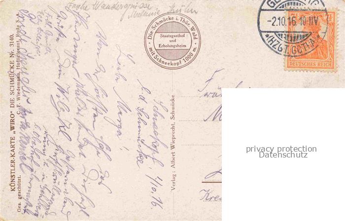 74023474 alte Postkarte Schmuecke Gehlberg Thueringen Panorama Kuenstlerkarte postalisch gelaufen Erhaltung siehe scans [WerneD78] KatCode: 11110016070017