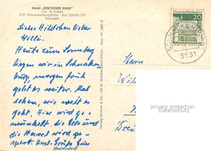 43495558 alte Postkarte Schnackenburg Hotel Deutsches Haus postalisch gelaufen Erhaltung siehe scans [KathaD81] KatCode: 11110003354021