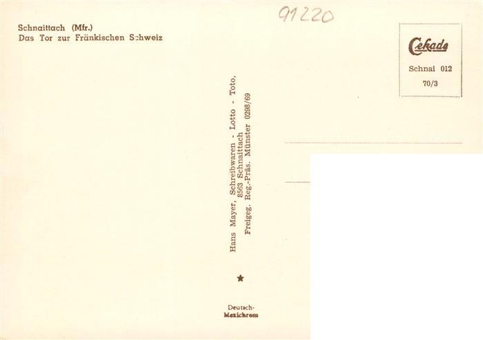 73871736 Schnaittach Panorama Tor zur Fraenkischen Schweiz postalisch nicht gelaufen Fliegeraufnahme Erhaltung siehe scans [FriedD77] KatCode: 11110009574155
