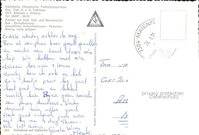 72470316 alte Postkarte Schnann Gasteheim Rosemarie Pension postalisch gelaufen Erhaltung siehe scans KatCode: 11390334070616
