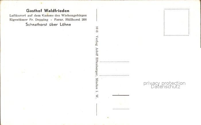 32211016 Schnathorst Gasthof Waldfrieden postalisch nicht gelaufen Erhaltung siehe scans KatCode: 11110005770016