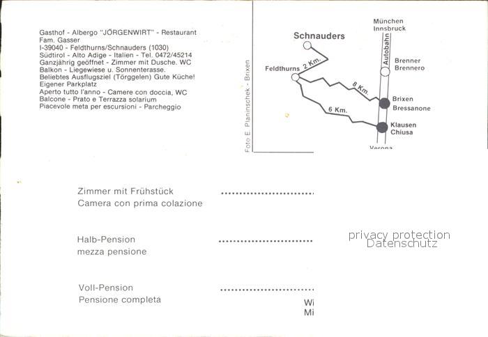 Schnauders Feldthurns Gasthof Joergenwirt Kirche Alpenblick postalisch nicht gelaufen Werbekarte (keine Postkarte) Erhaltung siehe scans