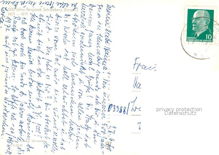 73125673 alte Postkarte Schneeberg Erzgebirge 500 Jahre Bergstadt postalisch gelaufen Erhaltung siehe scans [LiesaD40] KatCode: 11110014191280