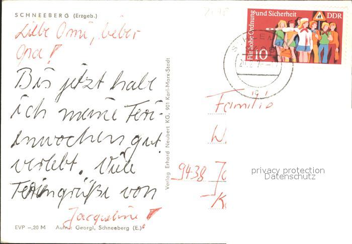 72302540 alte Postkarte Schneeberg Erzgebirge postalisch gelaufen Erhaltung siehe scans KatCode: 11110014191280