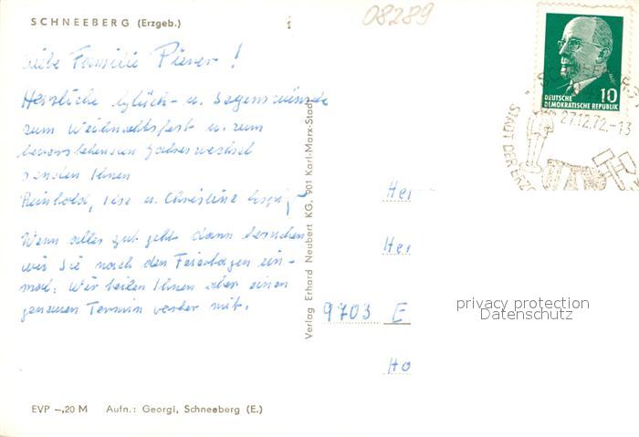 73567086 alte Postkarte Schneeberg Erzgebirge Ansicht mit Kirche Winterimpressionen postalisch gelaufen Erhaltung siehe scans [FriedD77] KatCode: 11110014191280