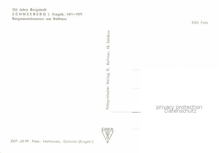72705238 Schneeberg Erzgebirge Bergmannsbrunnen Rathaus postalisch nicht gelaufen Erhaltung siehe scans [AndreD76] KatCode: 11110014191280