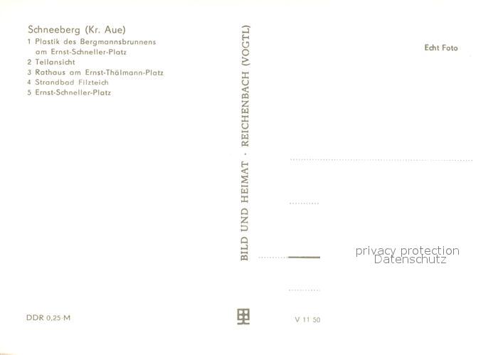 73606901 Schneeberg Erzgebirge Bergmannsbrunnen Teilansicht Rathaus Ernst Thaelmann Platz Strandbad Filzteich Ernst Schneller Platz postalisch nicht gelaufen Erhaltung siehe scans [WerneD78] KatCode: 11110014191280