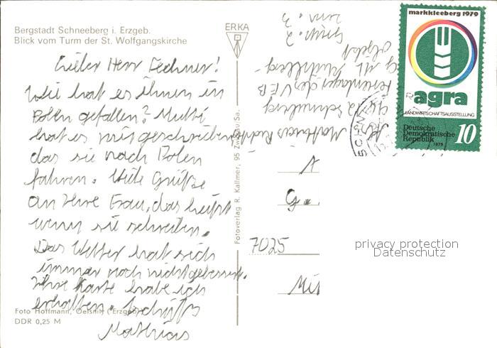 72135767 alte Postkarte Schneeberg Erzgebirge Bergstadt Blick vom Turm der St Wolfgangskirche postalisch gelaufen Erhaltung siehe scans KatCode: 11110014191280
