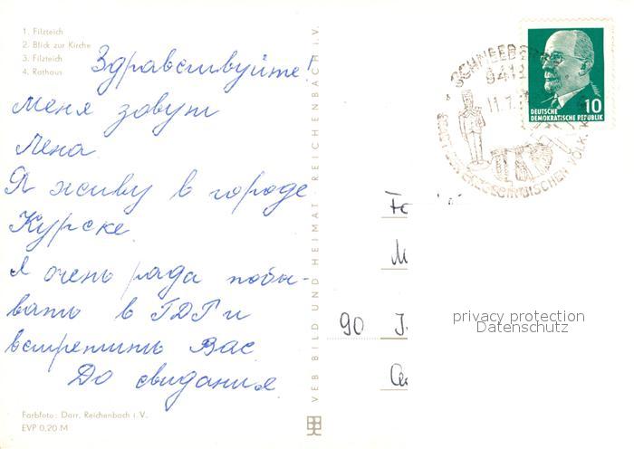 73023945 alte Postkarte Schneeberg Erzgebirge Filzteich Kirche Rathaus postalisch gelaufen Erhaltung siehe scans [KathaD81] KatCode: 11110014191280