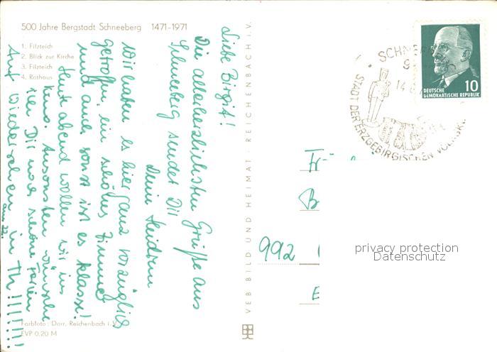 72378344 alte Postkarte Schneeberg Erzgebirge Filzteich Kirche Rathaus postalisch gelaufen Erhaltung siehe scans KatCode: 11110014191280