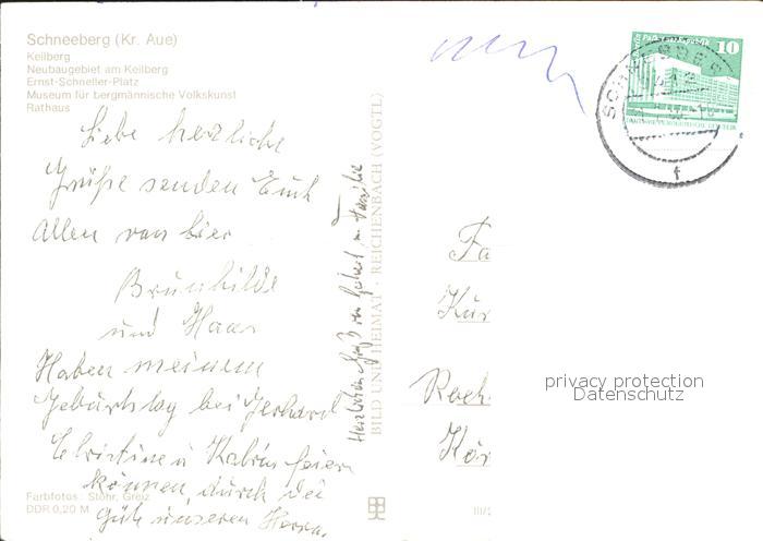 72374592 alte Postkarte Schneeberg Erzgebirge Keilberg Neubaugebiet Ernst Schneller Platz Museum Rathaus postalisch gelaufen Erhaltung siehe scans KatCode: 11110014191280