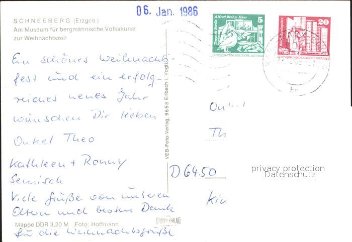 72135222 alte Postkarte Schneeberg Erzgebirge Museum fuer bergmaennische Volkskunst Weihnachtszeit postalisch gelaufen Erhaltung siehe scans KatCode: 11110014191280