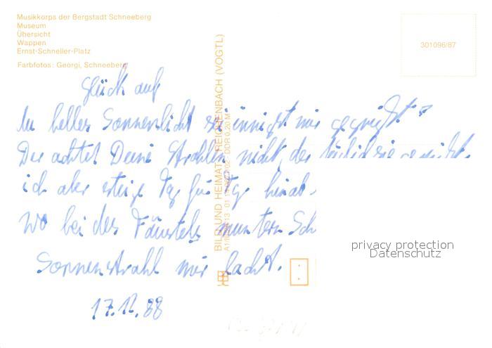 73151716 Schneeberg Erzgebirge Musikkorps Museum Wappen Ernst Schneller Platz postalisch nicht gelaufen Erhaltung siehe scans [FriedD77] KatCode: 11110014191280