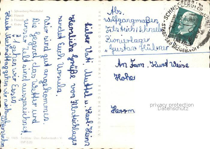 72419023 alte Postkarte Schneeberg Erzgebirge Neustaedtel Filzteich Badestrand Kirche postalisch gelaufen Erhaltung siehe scans KatCode: 11110014191280
