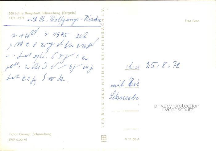 72474100 Schneeberg Erzgebirge Ortsansicht mit Kirche 500 Jahre Bergstadt postalisch nicht gelaufen Erhaltung siehe scans KatCode: 11110014191280