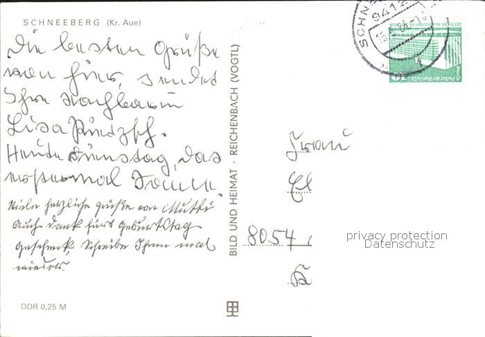 72474094 alte Postkarte Schneeberg Erzgebirge Stadtbad Bergarbeiter Krankenhaus Siedlung des Friedens Stadtzentrum postalisch gelaufen Erhaltung siehe scans KatCode: 11110014191280