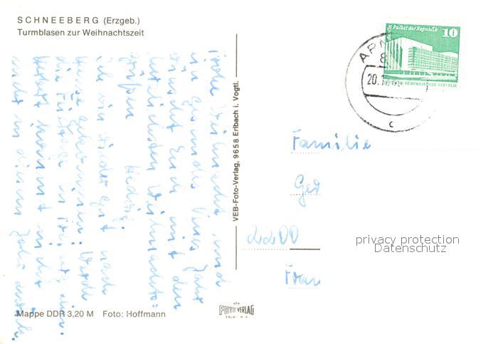 73098264 alte Postkarte Schneeberg Erzgebirge Turmblasen zur Weihnachtszeit postalisch gelaufen Erhaltung siehe scans [LiesaD40] KatCode: 11110014191280