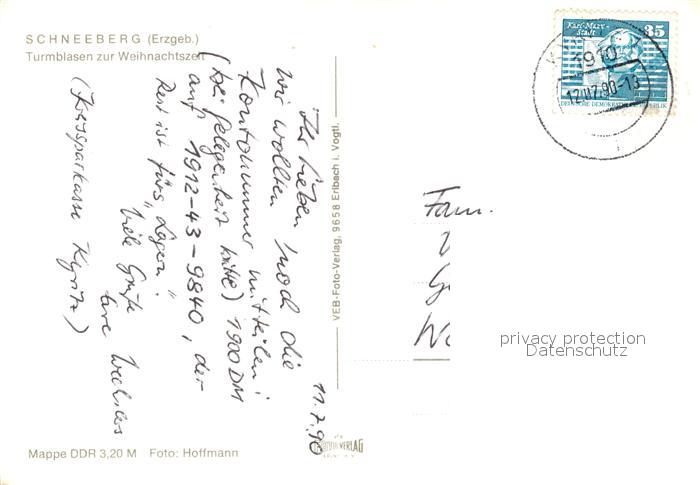 73066696 alte Postkarte Schneeberg Erzgebirge Turmblasen zur Weihnachtszeit postalisch gelaufen Erhaltung siehe scans [WerneD78] KatCode: 11110014191280