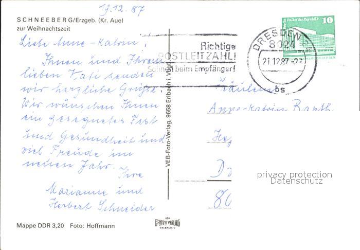 72046547 alte Postkarte Schneeberg Erzgebirge zur Weihnachtszeit postalisch gelaufen Erhaltung siehe scans KatCode: 11110014191280
