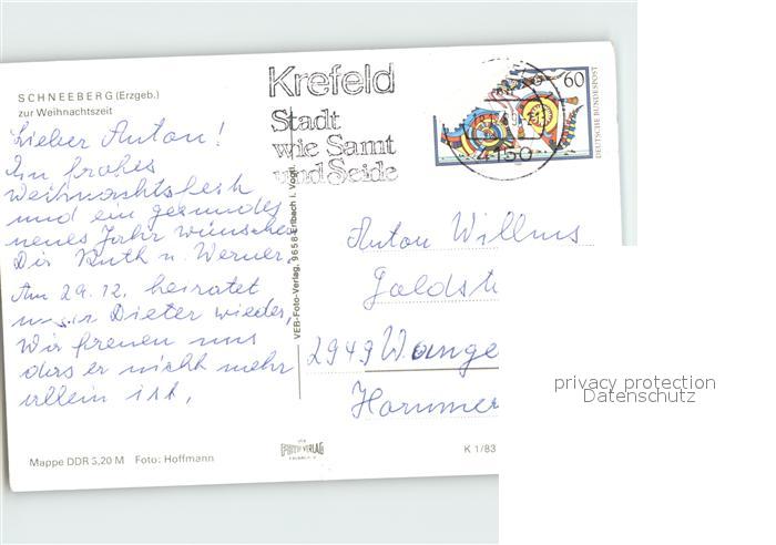72078835 alte Postkarte Schneeberg Erzgebirge zur Weihnachtszeit St Wolfgang Kirche postalisch gelaufen Erhaltung siehe scans KatCode: 11110014191280