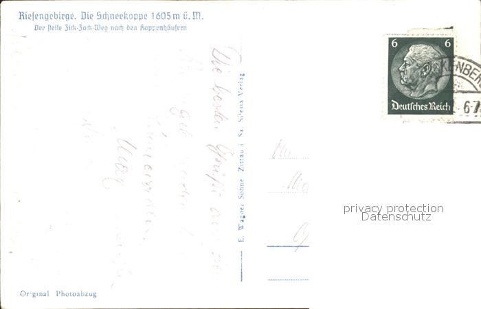 old postcard Schneekoppe Snezka mit Schneekoppenbaude postalisch gelaufen Erhaltung siehe scans