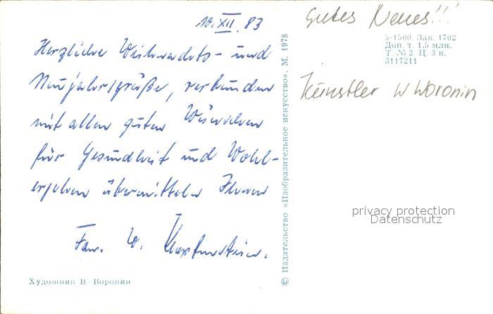 Schneemann Kinder Neujahr Kuenstlerkarte W. Woronin postalisch nicht gelaufen Erhaltung siehe scans