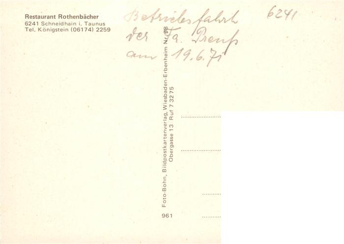 73890685 Schneidhain Koenigstein Taunus Restaurant Rothenbaecher postalisch nicht gelaufen Erhaltung siehe scans [WerneD78] KatCode: 11110006434005