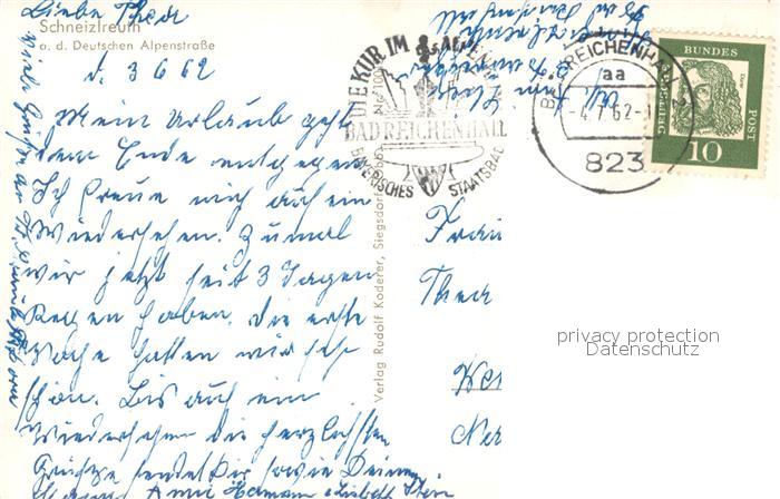 73734915 alte Postkarte Schneizlreuth Ansicht mit Kirche Deutsche Alpenstrasse Alpen postalisch gelaufen Erhaltung siehe scans [FriedD77] KatCode: 11110009172131