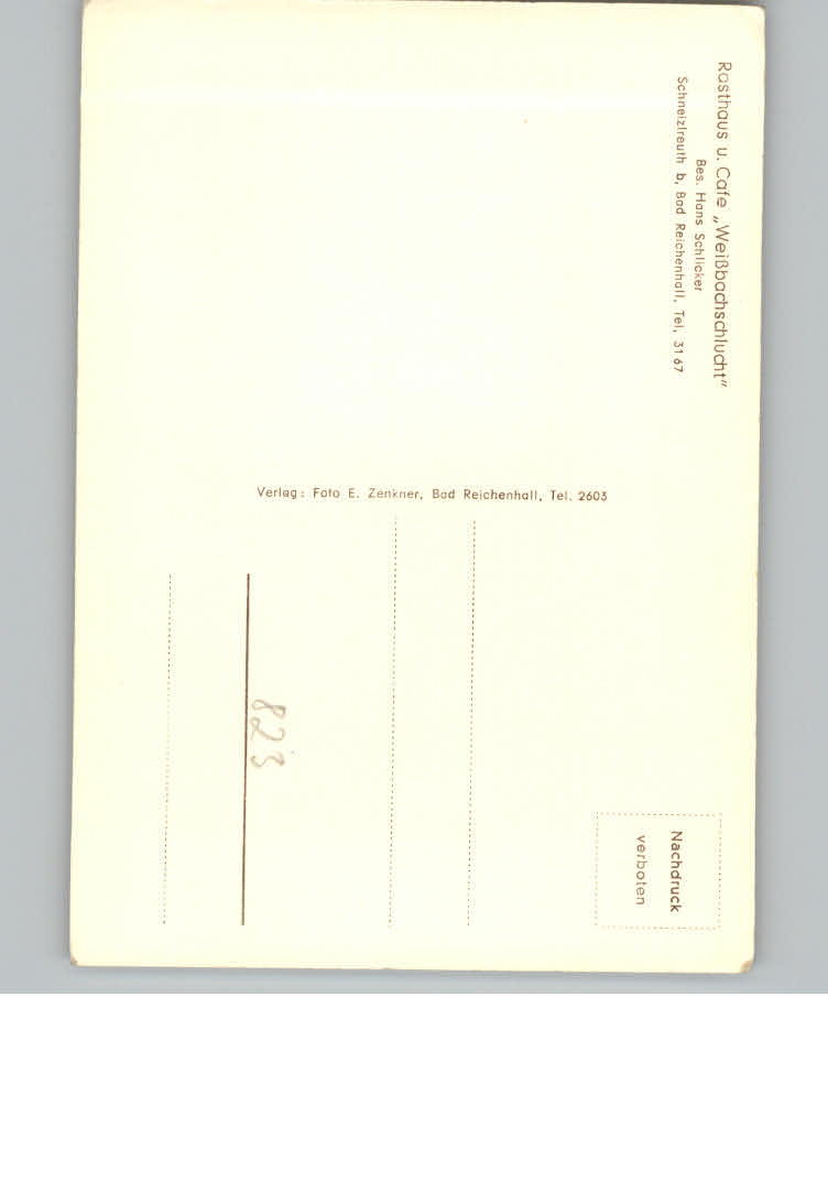 31157963 Schneizlreuth Cafe Weissbacherschlucht postalisch nicht gelaufen KatCode: 11110009172131