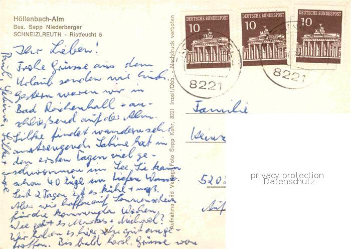 72755480 alte Postkarte Schneizlreuth Hoellenbach Alm mit Ristfeuchthorn postalisch gelaufen Erhaltung siehe scans [WerneD78] KatCode: 11110009172131