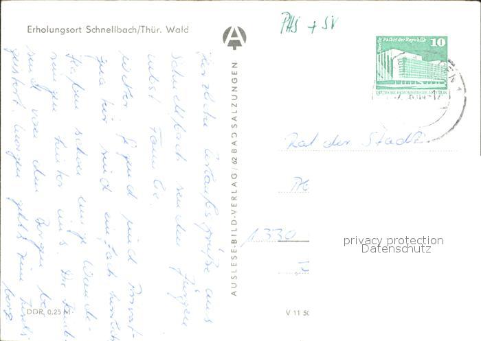 72138531 alte Postkarte Schnellbach Thueringen postalisch gelaufen Erhaltung siehe scans KatCode: 11110007140010