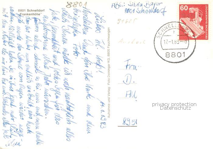 73763333 alte Postkarte Schnelldorf Mittelfranken Frankenhoehe Ortspartien postalisch gelaufen Erhaltung siehe scans [WerneD78] KatCode: 11110009571199